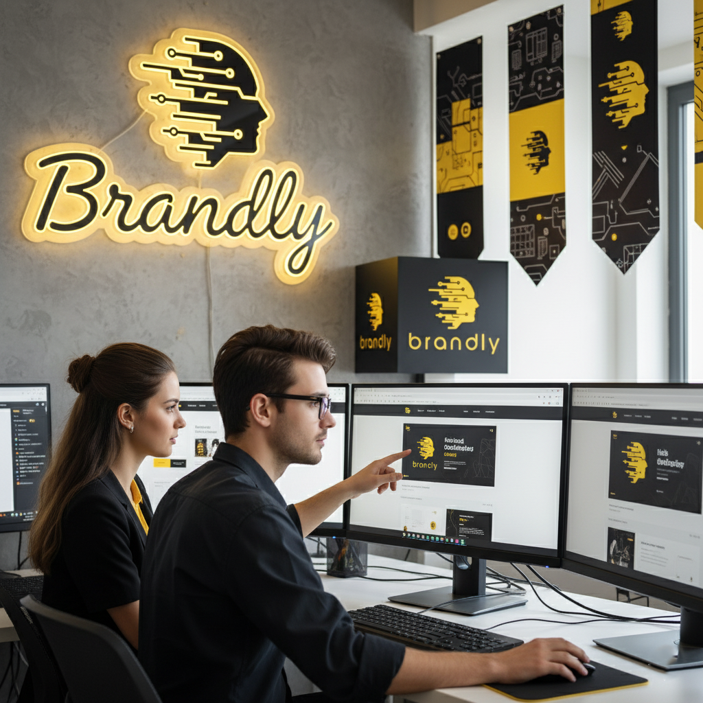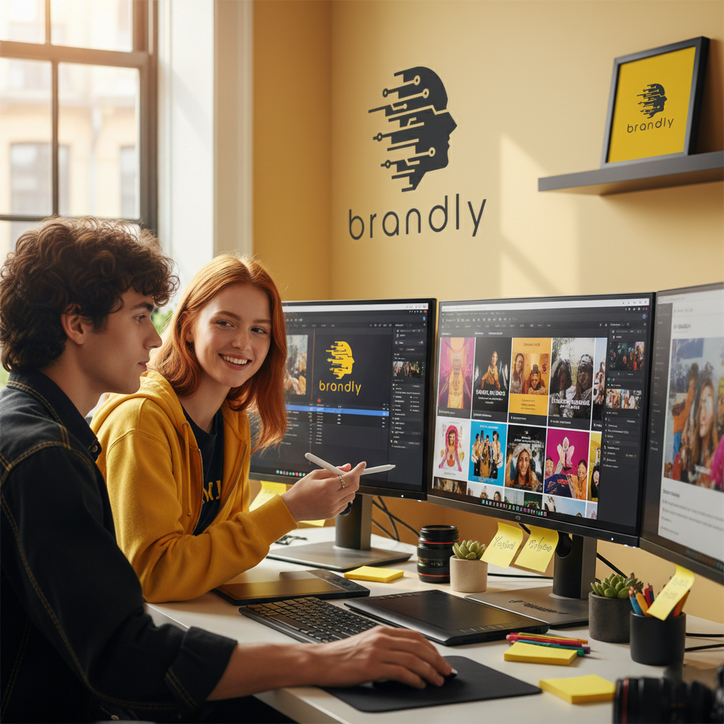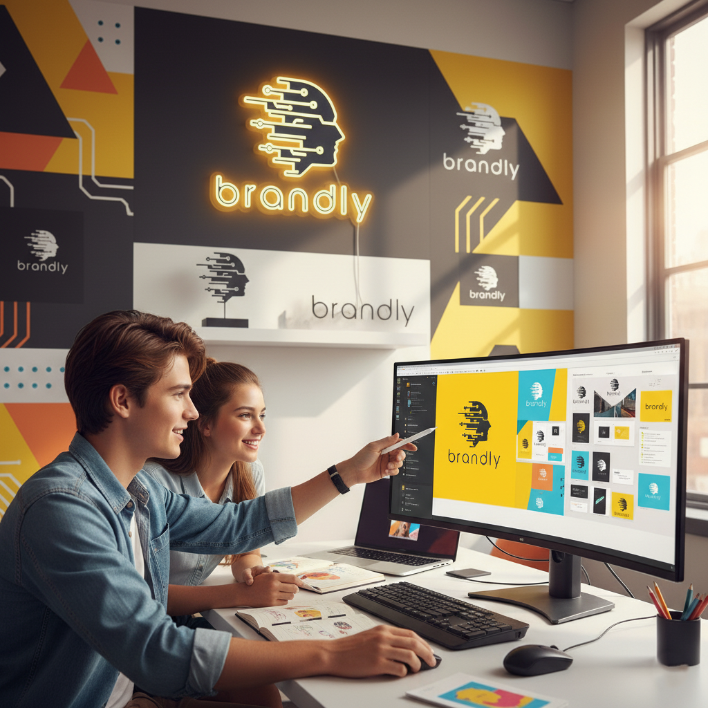 Crafting your complete visual identity, including logo, branding, colors, typography, and marketing graphics.